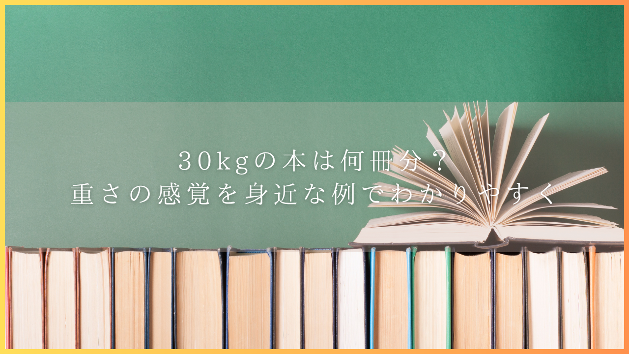 この記事では、「30kg=本でいうと何冊分なのか」「どのくらいの重さになるのか」を文庫本・単行本・マンガなどの種類別にわかりやすく整理しました。