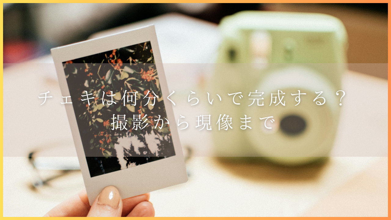 チェキでシャッターを押すと、数秒以内にフィルムがカメラから排出され、現像が始まります。このプロセスはほぼ即時で進むため、撮影時間はほとんど意識する必要がありません。