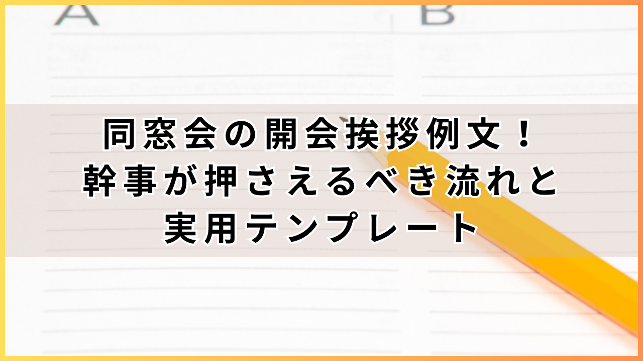 本記事では、同窓会の開会挨拶に盛り込むべきポイントを分かりやすく整理し、実際にそのまま使える例文を多数ご紹介します。